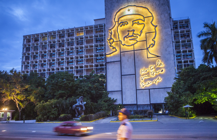 Desde el aeropuerto, cuando mi taxi entra en la ciudad lo primero que me recibe es la gigantesca plaza de la Revolución. Flanqueada por impresionantes edificios del estado, donde llama la atención el monumental mural del Che Guevara, con la frase: “Hasta la Victoria Siempre”, al que le han añadido otro nuevo de igual tamaño de Camilo Cienfuegos, con la frase “Vas bien Fidel”. En este marco, Fidel Castro daba sus larguísimos discursos ante cientos de miles de personas; hoy los da su hermano. El taxista señala con un dedo una imagen del Papa Francisco, que cuelga en el salpicadero de su Ford, y apunta con una sonrisa, “incluso durante su última visita el Papa impartió una homilía multitudinaria aquí, algo casi impensable en otra época”.