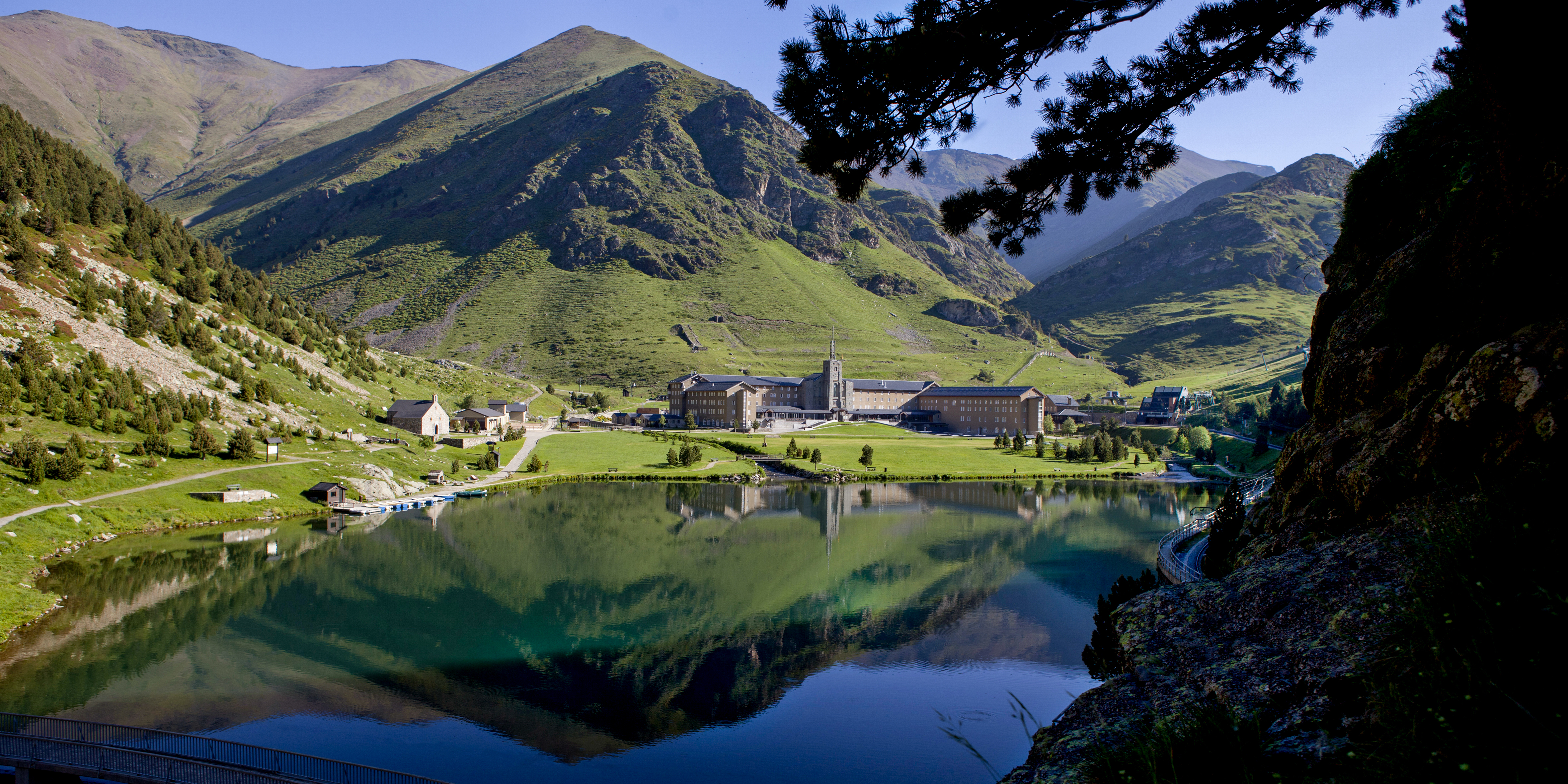 -Villa Pyrenees Golf & Spa. Un lugar único en los Pirineos para disfrutar del relax, la naturaleza y el deporte en un entorno idílico en plena Cerdanya. Alberga unas magníficas instalaciones repartidas en 6.000 m2, 1.000 m2 de ellos construidos, con capacidad únicamente para 16 personas en 8 dormitorios. La Villa se encuentra a escasos metros del campo de golf, abierto todo el año. Su ubicación, muy cercana a las mejores pistas de esquí del Pirineo, lo convierte en un alojamiento perfecto también para los amantes de la nieve y los deportes de invierno.