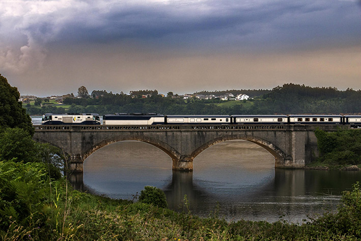 Recorremos en una semana el Norte de España a bordo de un lujoso hotel sobre ruedas. Un tren turístico de lujo sigue una ruta ferroviaria increíblemente bella, diseñada hace un siglo, y que hoy es inaccesible para el automóvil.