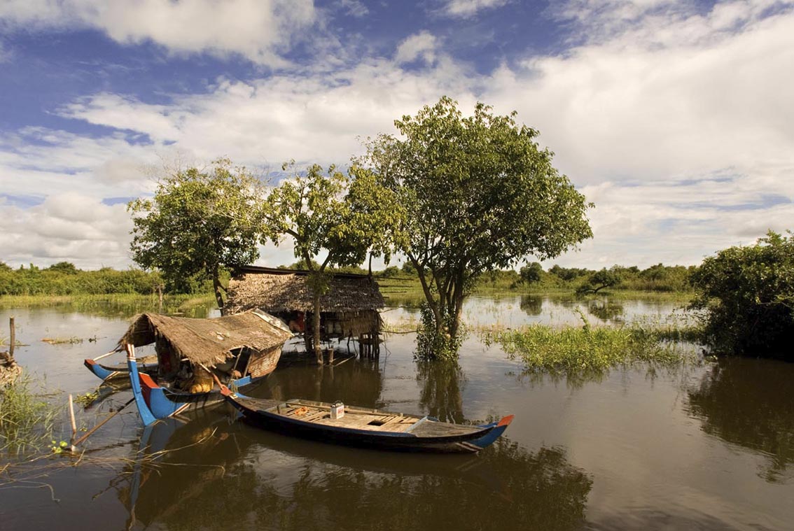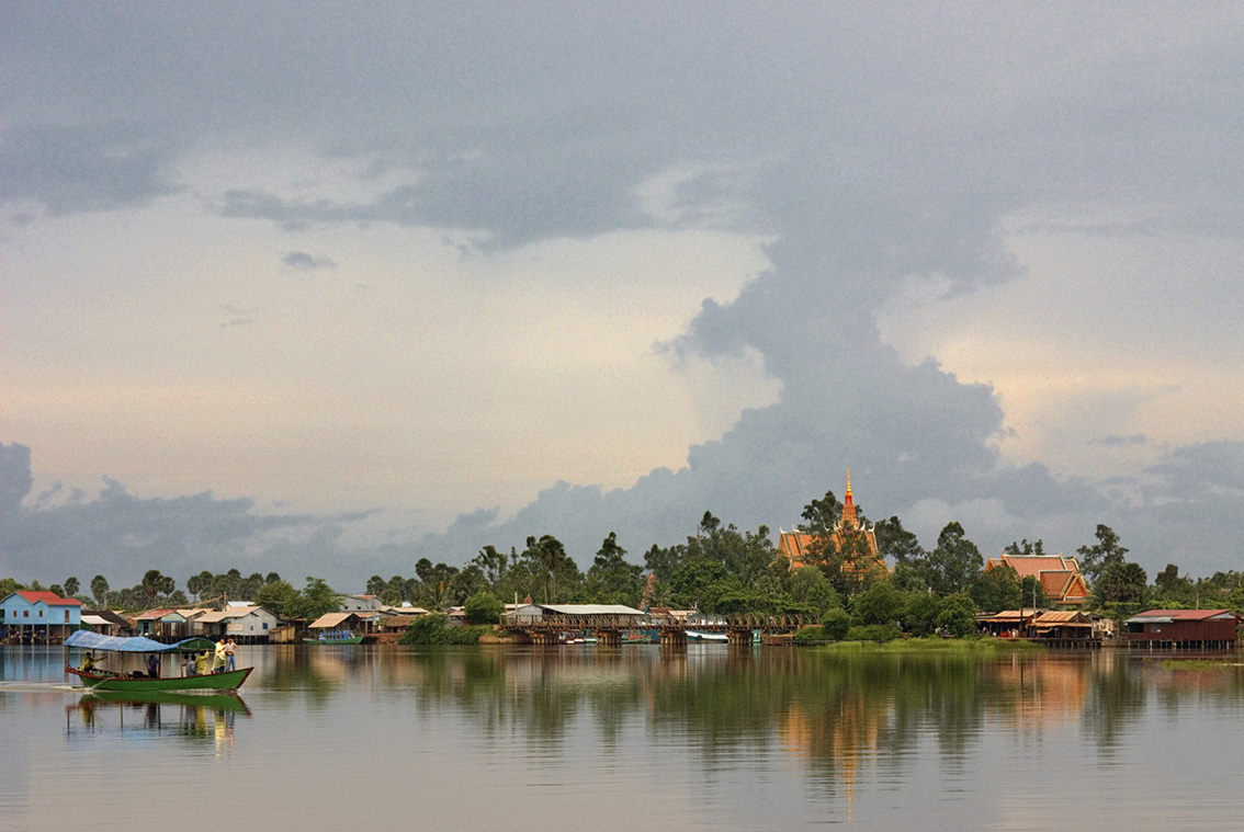 Dejamos atrás los templos de Angkor y dirigimos nuestros pasos hacia Battambang a través del Lago Tonlé Sap. Considerado como la extensión de agua dulce más grande de todo el sudeéste asiático, este río y su lago, son la convergencia entre el ser humano y la naturaleza, y, además, representan una verdadera autopista acuática que cada día utilizan miles de foráneos y locales para serpentear sus aguas cobrizas. El río Tonlé Sap recoge las gélidas aguas de las zonas montañosas del norte del país para posteriormente entremezclarse con el rió Mekong en los alrededores de la capital camboyana. Tiene una extensión de 2590 kilómetros cuadrados en la época seca, y puede llegar a los 24600 durante las lluvias, representando la mayor extensión de agua dulce de todo el sudeste asiático.
