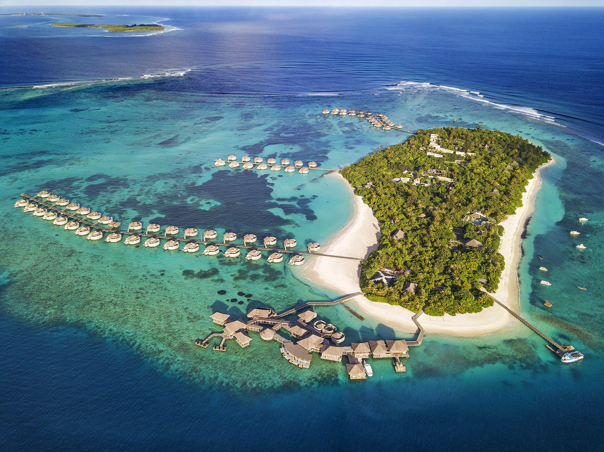 exterior privado para tomar el sol y duchas al aire libre, mientras que las overwater ofrecen bañeras trasparentes y, una terrazas con acuario y mesas de vidrio. Todas ofrecen su magia, su encanto, y en todas ellas se pueden disfrutar de una sensación de privacidad y aislamiento, con vistas increíbles al océano y la exuberante naturaleza inherente a las Islas Maldivas.