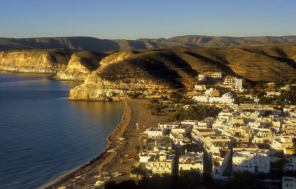 Hay pocos lugares cercanos donde gozar de un clima cálido durante todo el año y poder perderse en el tiempo. Éste es uno de ellos. En el litoral almeriense del Cabo de Gata hay pueblecitos de pescadores y, en el interior, pequeñas alquerías que transmiten sosiego. Este enclave, por fortuna, ha escapado al urbanismo desenfrenado que padece en litoral andaluz, debido a que el 23 de diciembre de 1987 fue declarado Parque Natural Marítimo-Terrestre, el primer espacio protegido de estas características creado en España. Es el mejor complejo volcánico fósil de la península: acantilados impresionantes, dunas petrificadas, estepa litoral sobre coladas de lava, conos volcánicos que configuran un paisaje ondulado y saladares poblados por miles de flamencos y otras aves migratorias y limícolas, que dan vida a este singular espacio de clima subdesértico que se mantiene casi virgen.