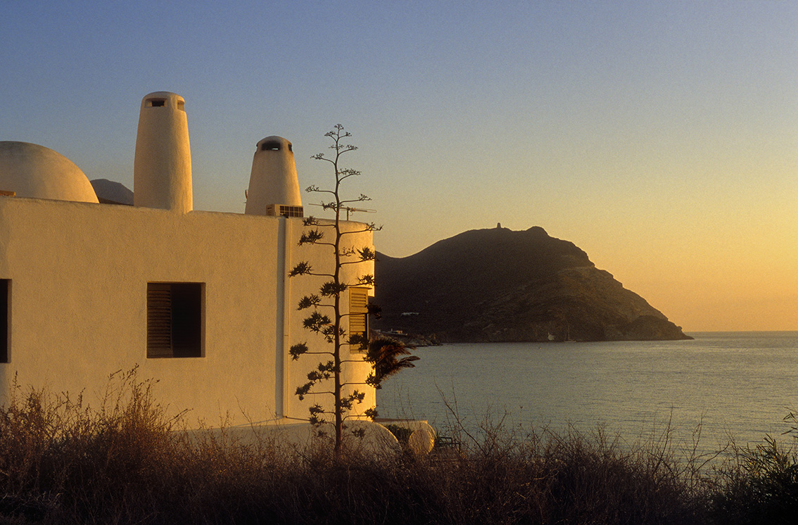 Además del paisaje y la vegetación desértica, lo que más te sorprenderá es la arquitectura tradicional; caracterizada por cúpulas que emergen del suelo, cortijos de diseño minimalista o pueblos de casas cuadradas enjalbegadas con techos planos, que parecen haber sido levantados para el deleite del viajero. Sin embargo, sólo buscan la funcionalidad y la eficacia. La sencillez de la arquitectura responde a la escasez histórica de recursos que ha tenido el lugar. Los techos planos son para recoger la poca agua que llueve y almacenarla en aljibes cubiertos por sugerentes cúpulas blancas. El blanco de las edificaciones, por supuesto, para luchar contra el calor y los numerosos molinos para moler los granos que producía una comarca eminentemente cerealística. También se pueden ver alguna vieja noria que servía para sacar agua del subsuelo. La arquitectura con los rasgos más puros se halla en las aldeas y cortijadas del interior, algunas ubicadas fuera de la zona de protección del Parque, como Los Albaricoques, Fernán Pérez, las Hortichuelas, la Cortijada de los Martínez o el Cortijo del Fraile, donde sucedieron los hechos que inspiraron a García Lorca sus “Bodas de Sangre”