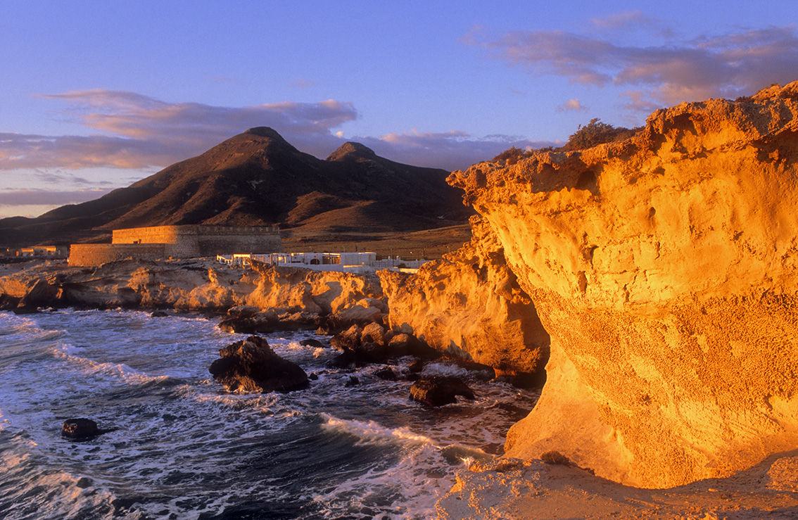 Hay pocos lugares cercanos donde gozar de un clima cálido durante todo el año y poder perderse en el tiempo. Éste es uno de ellos. En el litoral almeriense del Cabo de Gata hay pueblecitos de pescadores y, en el interior, pequeñas alquerías que transmiten sosiego. Este enclave, por fortuna, ha escapado al urbanismo desenfrenado que padece en litoral andaluz, debido a que el 23 de diciembre de 1987 fue declarado Parque Natural Marítimo-Terrestre, el primer espacio protegido de estas características creado en España. Es el mejor complejo volcánico fósil de la península: acantilados impresionantes, dunas petrificadas, estepa litoral sobre coladas de lava, conos volcánicos que configuran un paisaje ondulado y saladares poblados por miles de flamencos y otras aves migratorias y limícolas, que dan vida a este singular espacio de clima subdesértico que se mantiene casi virgen.