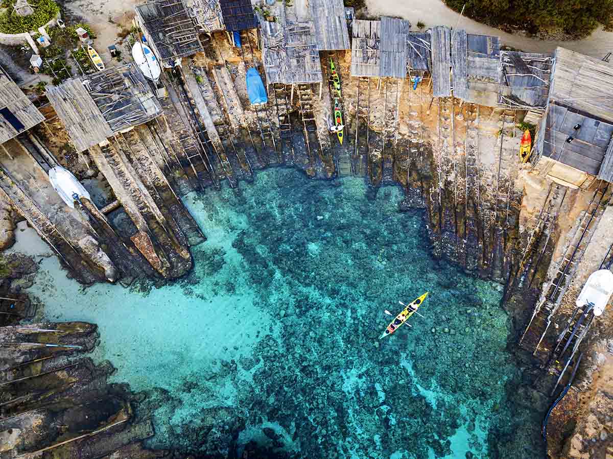 Pero el gran poder de seducción de la isla son sus playas y calas, repartidas a lo largo de sus 69 kilómetros de costa. De ellas destada Ses Illetes, al noroeste, siempre entre las mejores del mundo. Pero hay muchas más para elegir. En la misma zona: la de Llevant, miranto al este; o Cavall d’en Borras, a poniente, mucho más tranquila y salvaje. Al norte, Es Pujols y Sa Roqueta, en el municipio con la mayor oferta hotelera y de ocio. Al sur, Migjorn, la más extensa: 5 kilómetros repartidos en varias playas y calas. Y al noroeste, Ses Platgetes, amparadas por Es Caló, que aun conserva su esencia de antiguo pueblo de pescadores. Y todas ellas, con un denominador común: el ‘azul Formentera’, único en el mundo. Una transparencia en sus aguas que le otorga la Posidonia Oceánica (Patrimonio de la Humanidad desde 1999 y el ser vivo más longevo del planeta, con 100.000 años de antigüedad) que está bajo el mar Mediterráneo