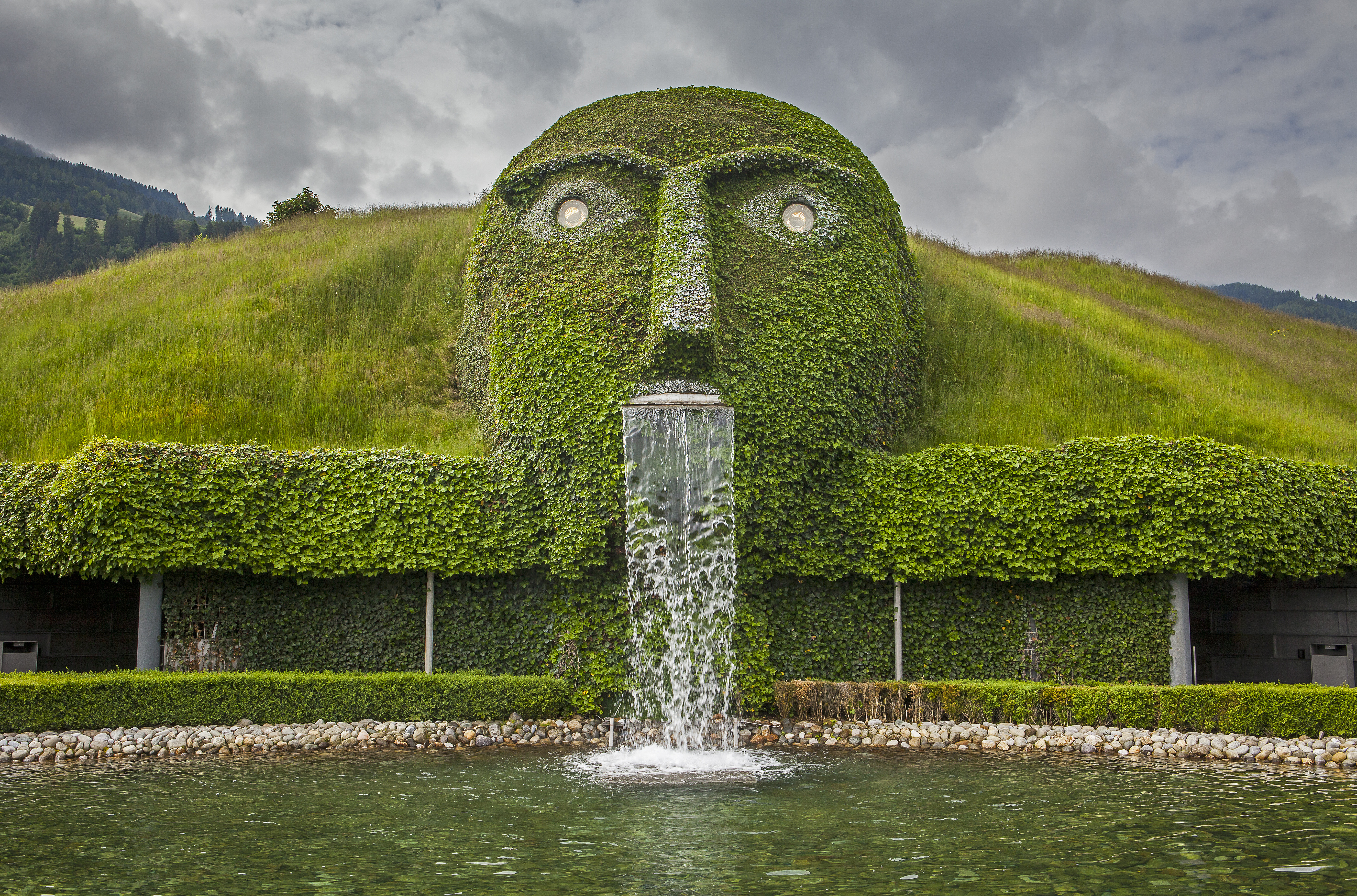 Esta instalación atemporal compuesta por una colina, la naturaleza y una cascada en forma de un gigante protector se erige sobre las cámaras de las maravillas en Wattens. Con motivo del centenario de la empresa en 1995, el artista multimedia André Heller recibió el encargo de crear un mundo de experiencias. En ese momento, Heller dijo que para él era importante crear algo atemporal y así surgió la idea del gigante verde. Hoy en día, la cabeza del gigante de 17 metros de altura se ha convertido en el símbolo de los Mundos de Cristal. Se considera un lugar de inspiración, una especie de caleidoscopio que conecta el agua y la naturaleza verde. Aquí, literalmente, las maravillas se originan en la «cabeza».