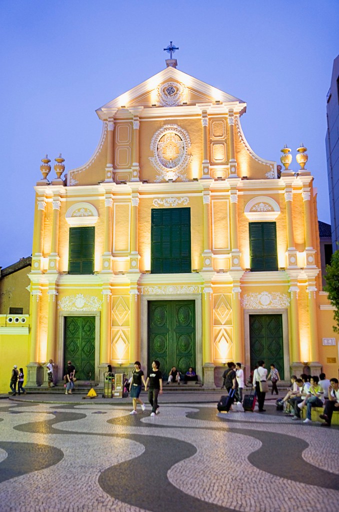 Casi nada queda de aquel poblado de pescadores que los primeros navegantes europeos encontraron, en una pequeña cala de la desembocadura del río Perla, tan solo el antiquísimo templo de A-Má. Donde los nativos adoraban, y se sigue adorando, a su diosa protectora. La de los marineros, que según los historiadores dio su nombre a la ciudad; A-Má Gao (en chino, Bahía de A-Má). Nada que ver con lo que encuentran las viajeras y viajeros de nuestro tiempo, que suelen iniciar su visita a Macao por el distrito central. En la peatonal plaza Largo do Senao, el corazón del centro histórico. Una plaza mayor que es la preferida por autóctonos y alóctonos para hacer shopping, o pasear por un espectacular mosaico a rayas blancas y negras que la pavimenta dibujando un relajante oleaje ante el que se despliega una magistral lección de arquitectura colonial lusa. Aquí destacan dos construcciones: una es el elegante edificio Leal Senado, que alberga los principales organismos administrativos de la ciudad, una interesante biblioteca que data de 1929 y el despacho del alcalde; y la otra es la Sagrada Casa de la Misericordia, fundada por el primer obispo de Macao en 1569, erigiéndose como el primer hospital de carácter occidental instalado en China, con el fin de ayudar a los más desfavorecidos. En el extremo norte de Largo do Senao se abre la pequeña plaza de Santo Domingo, que toma el nombre de la preciosa iglesia que acoge, levantada por los dominicos en 1587. en ella cada 13 de mayo tiene lugar la procesión de Nuestra Señora de Fátima, donde un grupo de mujeres católicas vestidas de blanco carga la imagen de la santa desde la Iglesia de Santo Domingo hasta la Capilla de nuestra Señora de Penha.