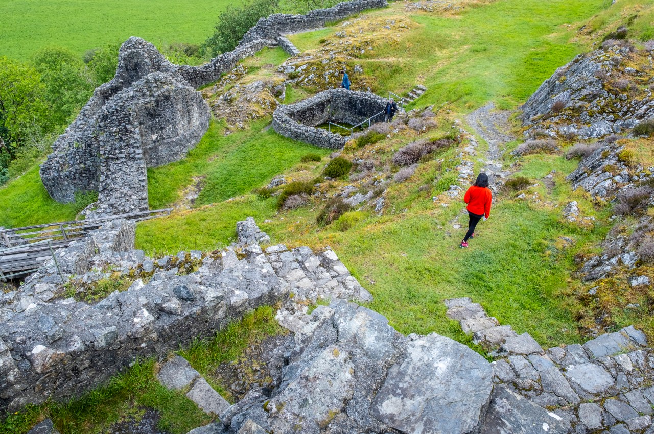 El Hotel Tyn Y Cornel. Un establecimiento de referencia desde principios de 1800, emplazado en las montañas centrales de Gales. Es ideal para abordar a primera hora de la mañana las ruinas del castillo Castell y Bere, un enclave mágico que parece haber salido de un cuento de hadas. “Sigue siendo un lugar remoto rodeado de una naturaleza salvaje, tal y como lo encontró por primera vez el rey Llywelyn el Grande”, comenta Mike antes de despedirse. He de salir del coche, y tomar una senda que se introduce en el bosque. Después de una caminata moderada, y siempre ascendiendo, aparece ante mis ojos la fortaleza. Está asentada a lo largo de una cima sobre un afloramiento rocoso que domina el lado este del valle Dysynni. Este baluarte protegió la frontera sur del reino de Gwynedd. Y aunque está en ruinas, permite apreciar en su planta los rasgos característicos de los castillos galeses. E intuir fácilmente por su ubicación, que un día controló la importante ruta comercial que desde la costa de Tywyn penetraba en dirección norte a través de las montañas de Dolgellau.