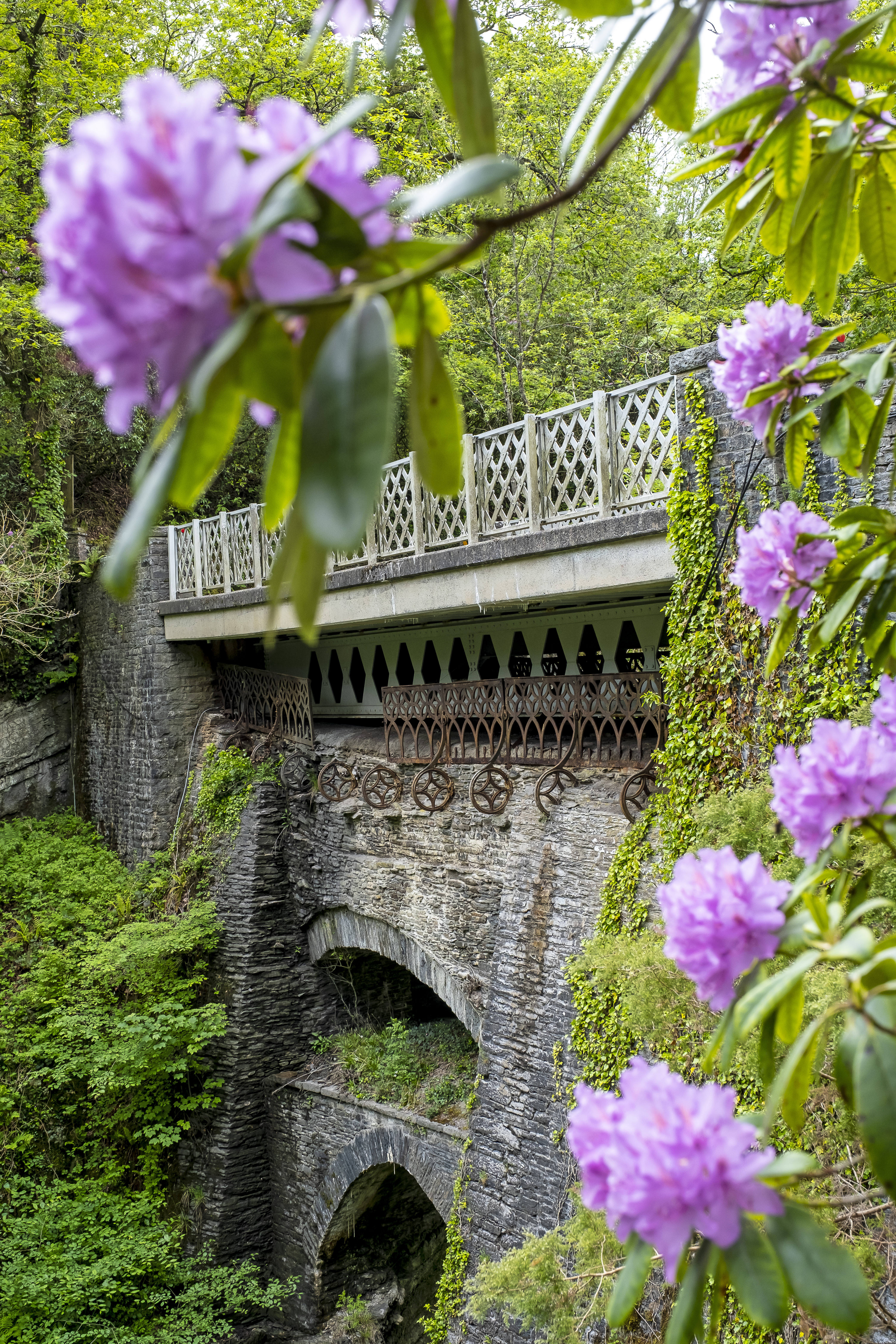 Próxima parada, el mítico Puente del Diablo y las Cataratas de Mynach en el pueblo de Pontarfynach . Según Mike, “la leyenda dice que los tres puentes superpuestos que dan como resultado el actual tiene su génesis en Belcebú. El primer puente es demasiado audaz para ser obra de la mano del hombre, la tradición oral dice que sólo alguien como el diablo lo podía llevar a cabo”. El chófer sonríe y me guiña un ojo, para añadir, “no hay dudas de que lo erigieron los monjes de Strata Florida en el siglo XI; en 1708 se construyo el segundo puente encima del primero; y en 1901 se tendió el puente de hierro que corona la peculiar construcción que ha llegado hasta nuestros días”.