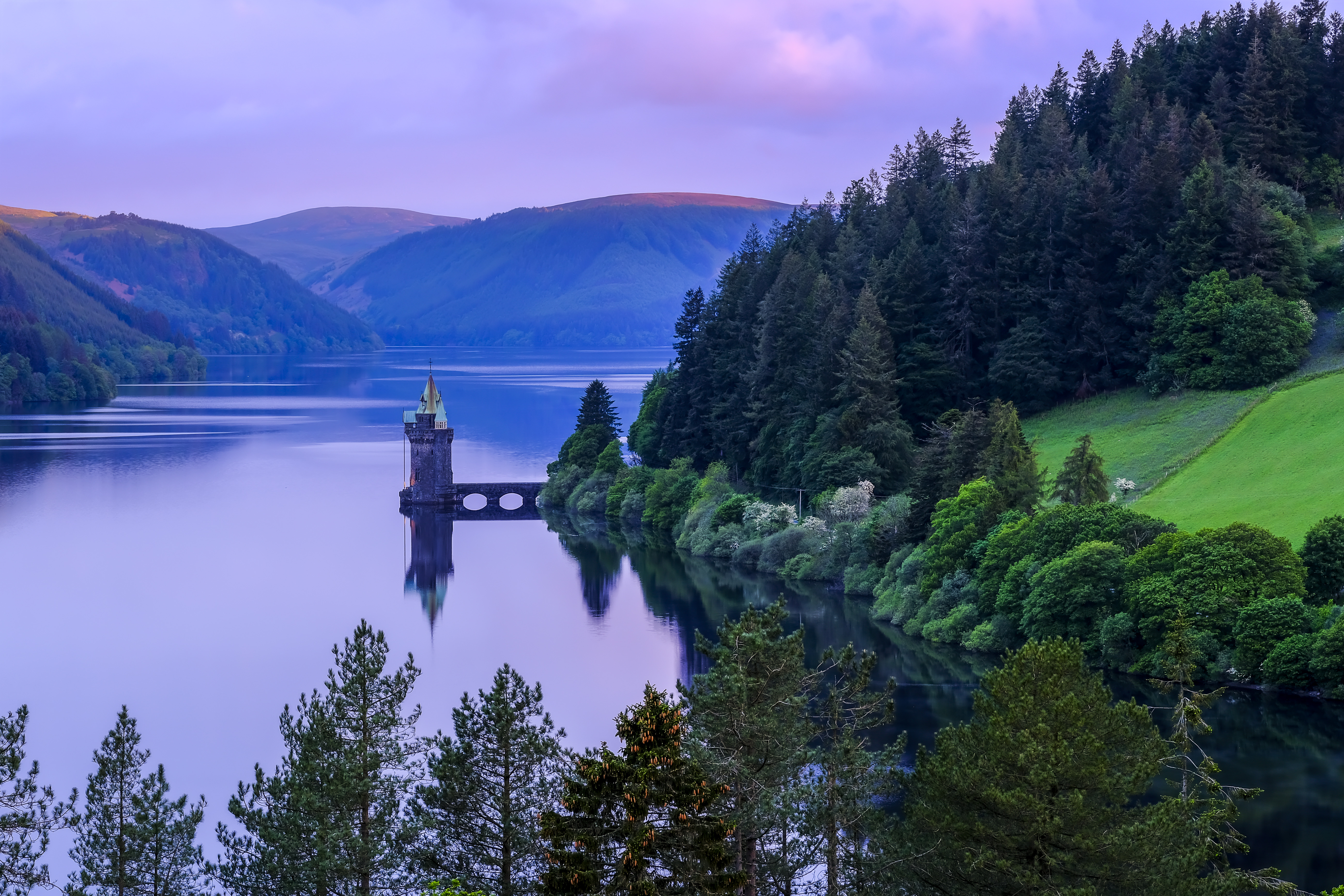 Tomando la A-470 hasta Rhayder, nos introducimos en el precioso valle de Elan, que forma parte de las escarpadas montañas de Cambrian. Antes de empezar a explorarlo Mike detiene el coche en el centro de visitantes, donde me invita a entrar. Es muy recomendable pasar por aquí. Te proporcionarán un mapa de la zona con las rutas que se pueden hacer a pie, en bicicleta o en coche para ver los lugares más interesantes del paraje. “El encanto del valle reside en la antropización del mismo” señala Jane, una afable guía que nos acompaña. Abre los ojos como platos, y añade que “pocas veces la naturaleza y la mano del hombre se han fusionado tan bien como en el Valle de Elan”. Y no le falta razón, a la vista está el idílico paisaje que desde 1892 dibuja el suave modelado del valle combinado con las presas que se construyeron para abastecer las necesidades de Birmingham. La última en construirse fue la de Claerwen, que la inauguró en 1952 la reina Isabel. Personalmente me fascina la elegante arquitectura del viaducto del embalse de Craig Góch , que a la vez hace de muro de contención. Desde aquí y por la carretera que da acceso al embalse las vistas sobre el valle son espectaculares. Nunca imaginé ver un paisaje tan idílico fruto de la arquitectura industrial.