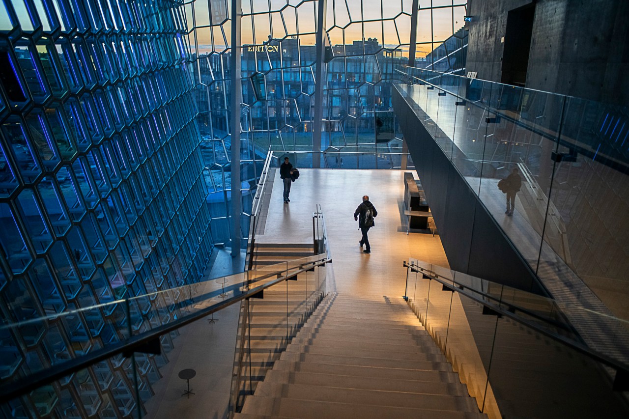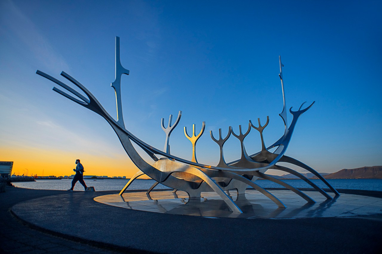 Son muchos los lugares que se pueden visitar en la ciudad. La Iglesia de Hallgrímskirkja es de los íconos más reconocibles de su skyline, una majestuosa estructura de hormigón que se eleva sobre el resto de edificios. Desde su torre a más de 70 metros de altura se tienen las mejores vistas de la ciudad y sus alrededores. Laugavegur es la principal calle arteria comercial. Aquí se encuentra una amplia variedad de tiendas de artesanía, ropa de lana islandesa y productos únicos. Además, los numerosos restaurantes y bares a lo largo de esta calle te ofrecen la oportunidad de degustar la deliciosa comida islandesa, como por ejemplo la famosa sopa de langosta. El Harpa Concert Hall es un moderno y espectacular centro de conciertos y conferencias ubicado en el paseo marítimo. Su fachada de vidrio y acero es un reflejo del entorno natural de Islandia y, por la noche, se ilumina de manera deslumbrante. El Lago Tjörnin, también conocido como el «Lago de Reykjavik,» es el mejor lugar en el que disfrutar del atardecer. Durante el invierno, el lago se congela y se convierte en una pista de patinaje sobre hielo. En verano, sus aguas están llenas de patos y cisnes, creando una vista bucólica. Vale la pena dar un tranquilo paseo a lo largo del histórico puerto y llegar hasta la imponente estatua del «Viajero hacia el Sol«, erigida en conmemoración del bicentenario de la ciudad. Esta escultura representa un navío vikingo, en un periplo hacia el sol y la promesa de un futuro más esperanzador.