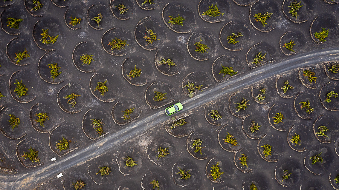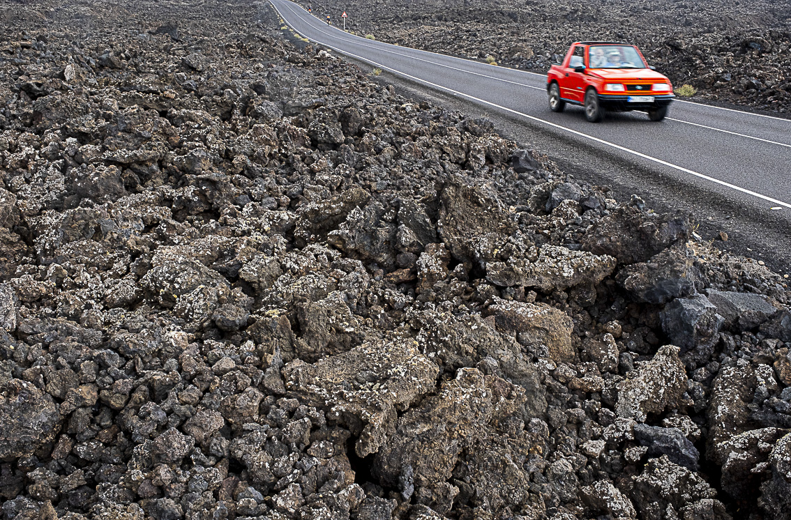 El espectacular paisaje de Lanzarote lo han dibujado a medias, en un mano a mano, la lava i el ingenio de los conejeros (así es como se conoce popularmente a los lanzaroteños). Tierra negra i bermeja que han sabido domar los habitantes de esta Isla con esfuerzo, tesón e inteligencia y que ha dado lugar a campos de lava cubiertos de tierras fértiles recuperados para el turismo, a pueblos exóticos, y a la declaración de Reservado de la Biosfera. Un universo por descubrir, que tiene su inicio en las oficinas de Cabrera Medina, donde recogemos nuestro vehículo