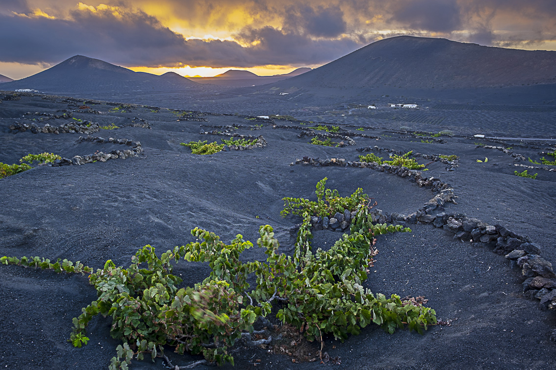 Recorrer los viñedos de la Geria es una experiencia fascinante. Los campos se extienden hasta donde alcanza la vista, creando un paisaje de ensueño marcado por los hoyos y zocos. Durante la primavera y el verano, las vides se visten de verde, creando un contraste impresionante con el negro de la lava y el azul del cielo. Pero la belleza de la Geria no se limita a sus viñedos. La zona está salpicada de encantadores caseríos blancos, coronados por palmeras y árboles frutales, que se funden armoniosamente con el paisaje volcánico. Estas casas tradicionales, algunas de las cuales datan de siglos atrás, son un recordatorio del modo de vida rural de Lanzarote y de la historia de la isla.