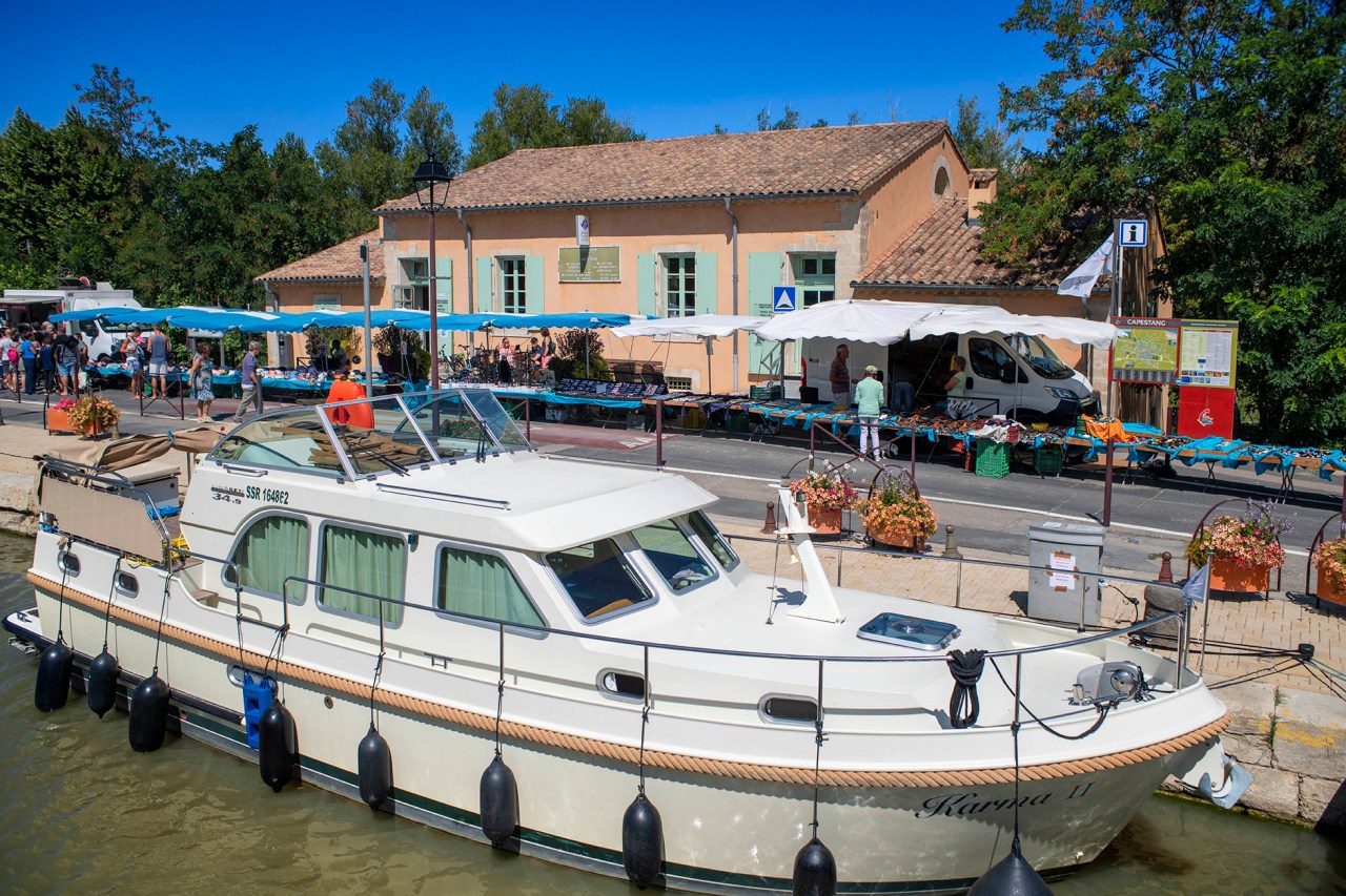 Poilhes es un bonito lugar en el que parar el barco y dar una vuelta por la ciudad, aunque si es jueves, sábado o domingo mejor continuar hasta Capestang y darse una vuelta por el mercado. Aquí se puede hacer acopio tanto de productos locales, como queso, pan y buen vino como también de artesanías, y también se puede comer en alguno de sus coquetos restaurantes.