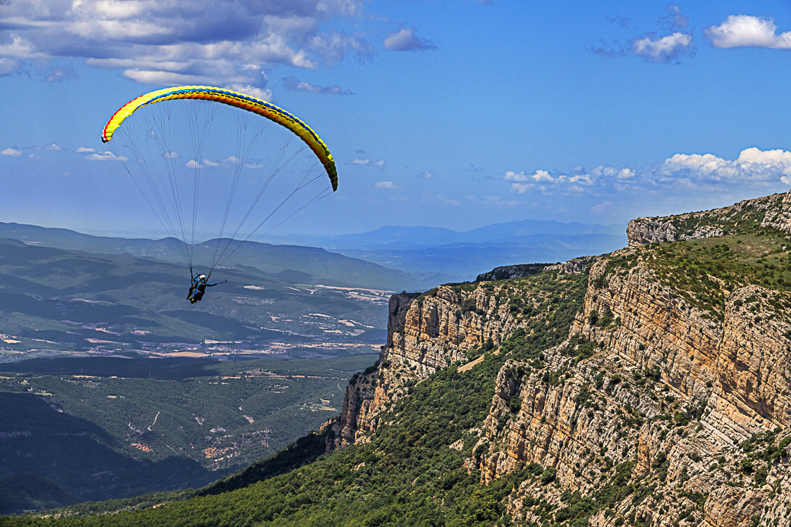 Finalmente, el parapente es el producto estrella cuando hablamos de actividades aéreas, y los municipios de Àger, en La Noguera, y Organyà, en L’Alt Urgell, se han convertido en los principales polos de esta modalidad y de las disciplinas relacionadas con el vuelo, como el salto base, los ultraligeros, los vuelos en globo aerostático o los vuelos sin motor.