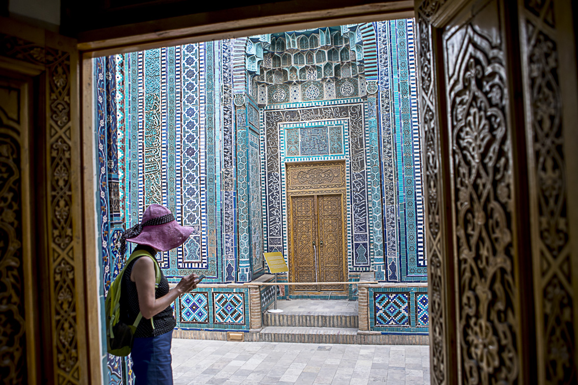 La ciudad actual es moderna y ordenada debido a la huella que dejaron los rusos. No obstante, quedan grandes ejemplos de un pasado glorioso, con unas construcciones faraónicas. Como todo imperio, utilizó la arquitectura para su propaganda. “Si dudas de nuestro poder, mira nuestros edificios” decía Timur. Un buen ejemplo es la mezquita Bibi Khanym, un edificio de dimensiones colosales a modo de templo expiatorio, que fue tomado como modelo constructivo para las mezquitas timuridas. A pocos pasos, después de pasar el mercado, encontrarás la necrópolis de Shah-i-Zinda. Junto al mausoleo de Qsam Ibn Abbas que era primo del profeta, personajes de la élite del imperio de Timur levantaron aquí suntuosos panteones; está formado por treinta mausoleos de una belleza que roza lo divino.