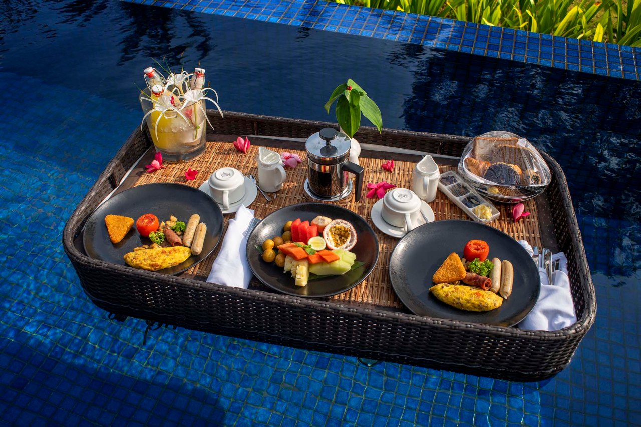 Uno de sus muchos lujos es poder despertarte frente a la playa de aguas cristalinas y sumergirte en tu propia piscina privada mientras el sol se eleva sobre el horizonte. El hotel ofrece una experiencia de desayuno perfecta para sorprender a la pareja, un desayuno flotante en tu propia piscina. Todo un festín matutino mientras te relajas observando el exuberante paisaje tropical que rodea cada una de las villas. Sin duda, la mejor manera de comenzar el día.
