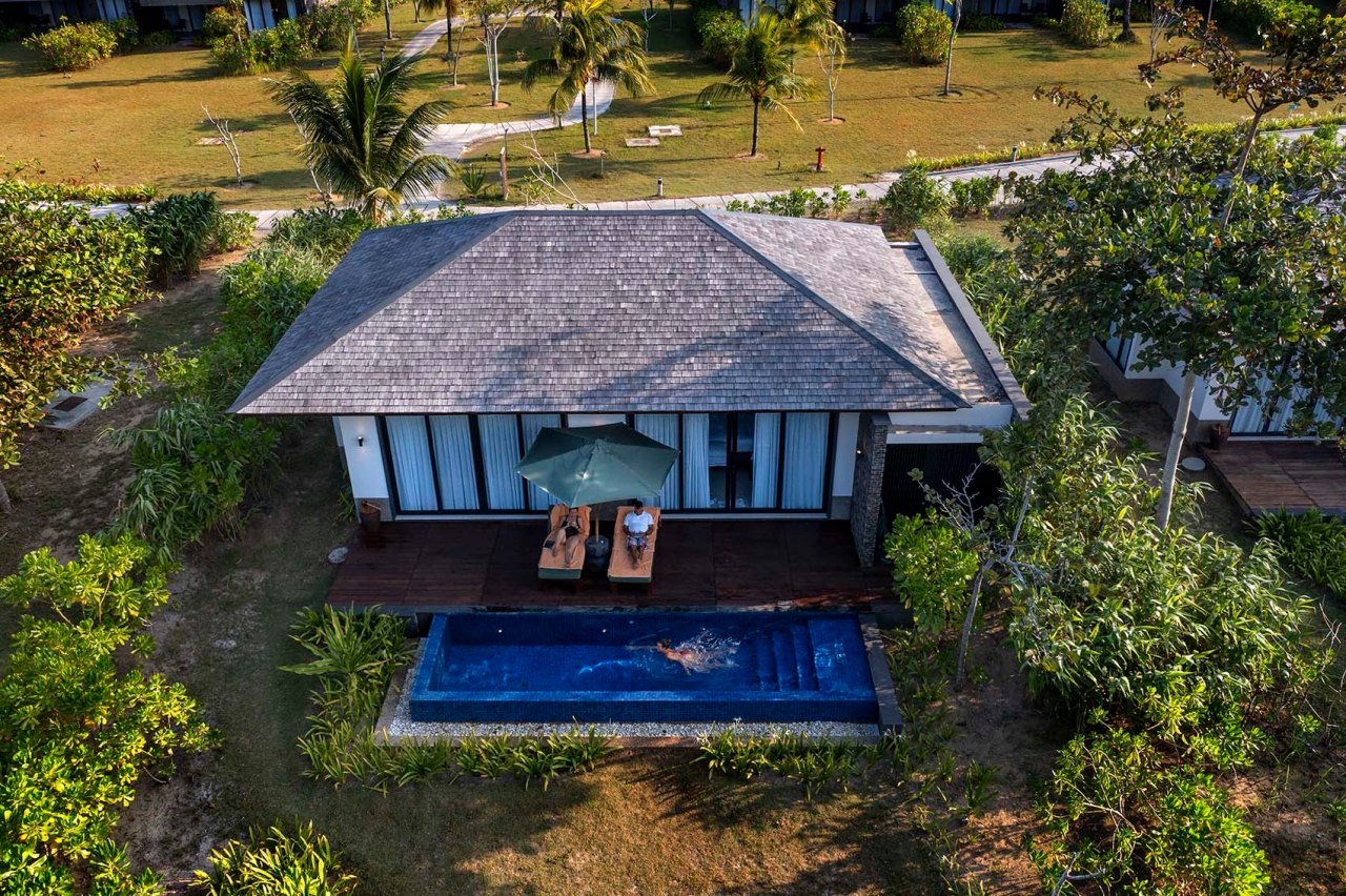 Ubicado en el extremo oriental de esta exuberante isla, este resort cinco estrellas conforma un oasis de serenidad y elegancia con vistas al Mar de China Meridional. Sus 127 luminosas suites y villas con terraza o piscina ofrecen mucho espacio para familias, amigos y parejas. Todos combinan un diseño simplista y contemporáneo con un toque de estilo indonesio. Cada villa está meticulosamente diseñada para combinar el lujo moderno con la autenticidad del entorno natural de la isla. Los muebles de las villas utilizan maderas nobles, ratán y telas elegantes, que aportan una sofisticación arraigada en la naturaleza y el respeto por el entorno natural de la isla.