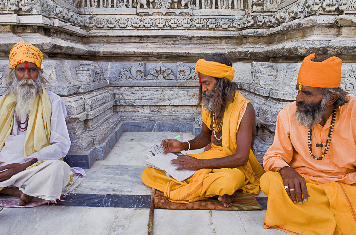 Udaipur es de esas ciudades que nunca se olvidan, un destino al que siempre se quiere volver. Es una de las estampas más románticas de la India que emerge como un vergel en un estado marcado por la aridez. El centro histórico de esta delicada ciudad se ordena entorno al artificial lago de Pichola, que toma su nombre del pueblo que ocupaba el espacio inundado. Sentado en su orilla, sobre los escalones de Gangur Ghat, observo en su centro el Lake Palace, que hoy es el hotel de lujo más famoso de Asia; flota sobre las mansas aguas del lago. Y más allá. Aguas adentro, en la isla de Jagmandir, otro palacio erigido en 1620 ha sido trasformado en hotel. Y frente a ellos, reflejando su gran fachada de 500 metros se alza en la orilla del lago el monumental City Palace, que alberga en su interior un intrincado laberinto de patios, estancias y pasillos; una parte está ocupada por la familia del maharajá, otra está abierta al público, y una tercera ha sido trasformada en un encantador hotel, el Fateh Prakash. Desde que en 1970 Indira Gandhi derogó los títulos y favores económicos de los que gozaban los maharajas, estos han tenido que trasformarse en empresarios turísticos para explotar el potencial de sus posesiones, en el mejor de los casos. En otros, fueron despojados de sus palacios y los explota el estado. Pero Udaipur no son sólo sus palacios, ofrece un entrañable centro histórico cargado de havelis coronado por la cima que dibuja el impresionante templo jainista de Jagdish Mandir erigido en honor a Visnú. A él se accede por una gran escalinata flanqueada en su cima por dos enormes esculturas de elefantes que dan la bienvenida.