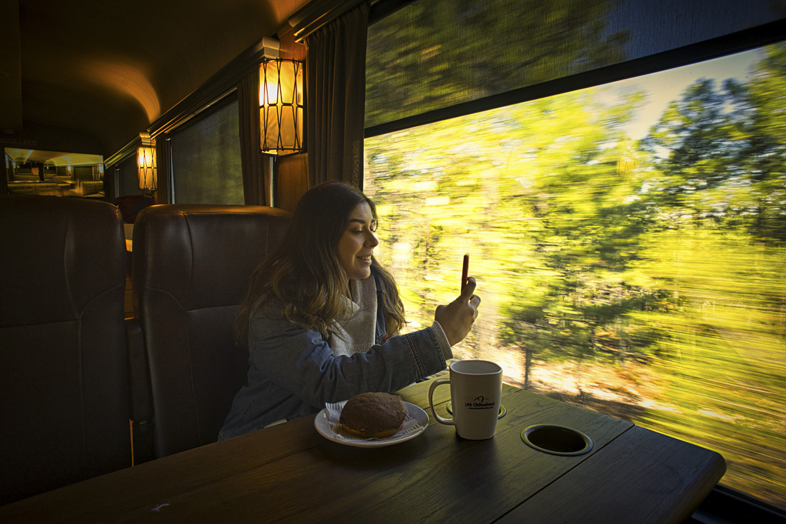 El Chepe Express ofrece varias clases, pero su Primera Clase es una experiencia en sí misma: butacas reclinables, ventanas panorámicas, sistema de audio, baños de diseño y acceso prioritario al restaurante Urike, con vistas de 360° y terraza-bar. Aquí se sirve lo mejor de la gastronomía local, con sabores de Sinaloa y Chihuahua, preparados por chefs regionales.