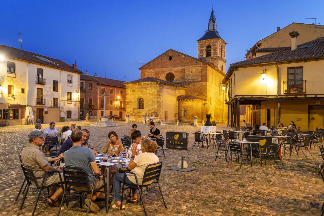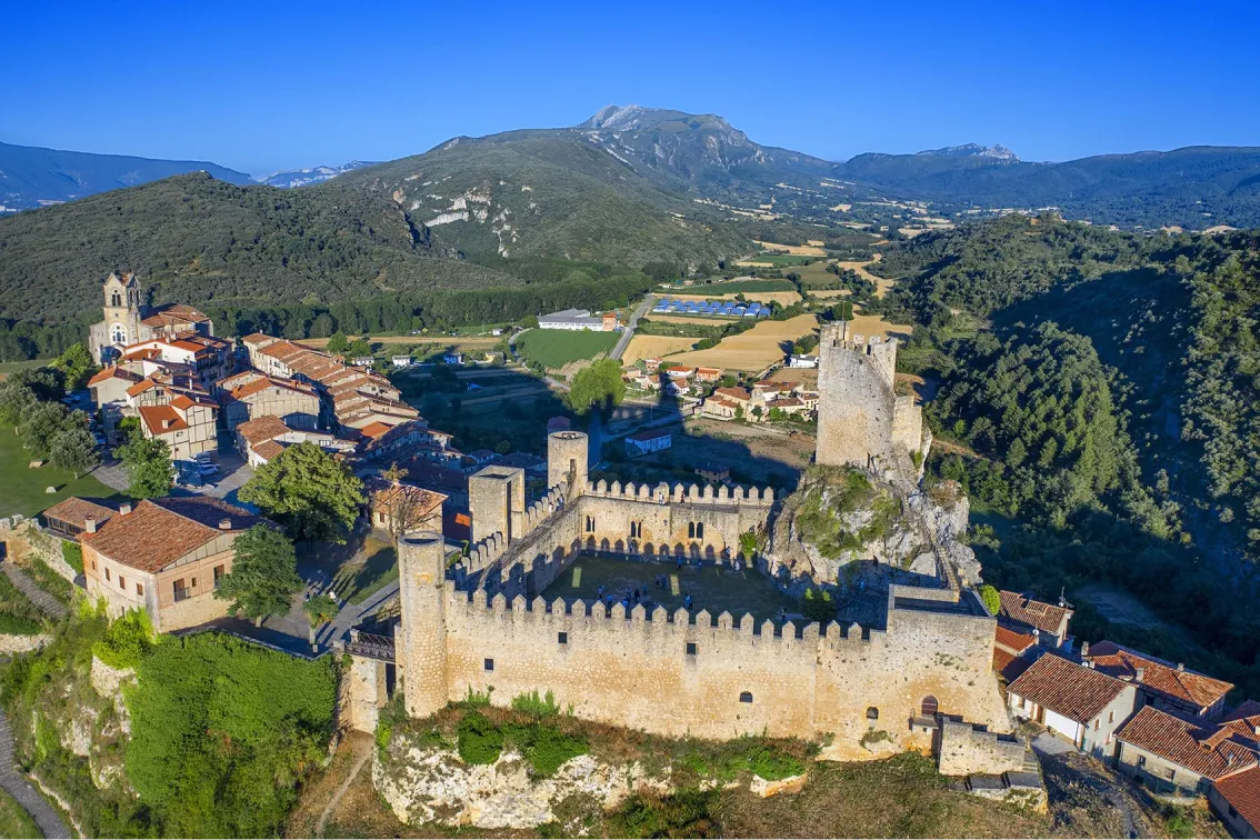 La primera parada llega pasadas las 19:00 horas para visitar el pueblo de Frías, ya en la provincia de Burgos. El autobús de apoyo recoge a los viajeros para llevarlos hasta la misma entrada del pueblo, al que apodan “Ciudad del Cielo” ya que alza sobre un peñón de roca rodeado pro un precioso valle regado por las aguas el río Ebro. Sus calles empedradas, sus casas de piedra y sus monumentos medievales transportan al visitante a otra época. La Plaza de España, situada en el centro de la villa, es uno de los lugares más emblemáticos de Frías, con su fuente de piedra y sus balcones de madera decorados con flores. La iglesia de San Vicente, situada en la parte alta del pueblo, es uno de los monumentos más destacados. Se trata de una iglesia románica cuya portada principal se exhibe hoy en día en el Museo de los Claustros de Nueva York. Otro de los monumentos más importantes de la villa es su Castillo, situado sobre un promontorio con vistas panorámicas hacía todo pueblo, y que representa uno de los castillos roqueros más espectaculares de Castilla. Fue construido en el siglo XI y remodelado en sucesivas épocas. En su interior se pueden visitar diferentes estancias como la Torre del Homenaje, el Salón de Armas o la Cámara del Rey.